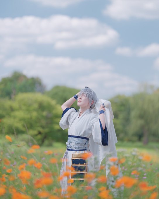 【cosplay/鶴丸国永】 ⚠️.5/肌色⚠️ 背中があいてたので…うっかりH○T LIM1Tやんなきゃって😂 キレイに撮って頂きました🙏✨✨ photo:りばーさん(@rom_river ) #riverzphoto