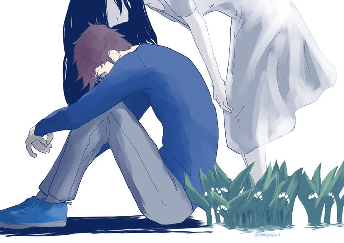 Sitting in the daisyโs meadow, waiting for the sunโฆ ใใคใธใผใๅฒใ่ๅใซๅบงใฃใฆๅใๅพ ใฃใฆใ #OMORIFANART #omoribasil