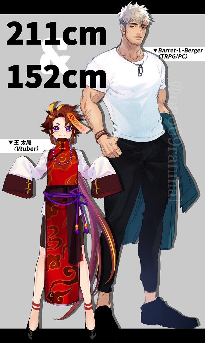 そうだ。これ、Vの息子である太鳳に「一緒に並びたい」って言われたから並ばせたやつ👀👆作画ジャンルの違う二人感 152cmのショタと211cmの巨体