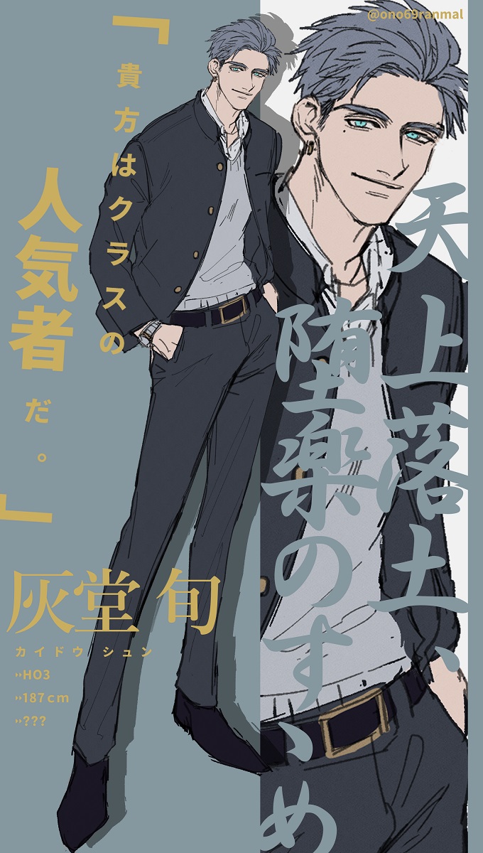 @TRPG_TL 【天上落土、堕楽のすヽめ】 ‣灰堂 旬(かいどう しゅん) ‣HO3…貴方はクラスの人気者だ。 ラフは間に合った。HO3おススメされてたの今でも笑ってるからな私。