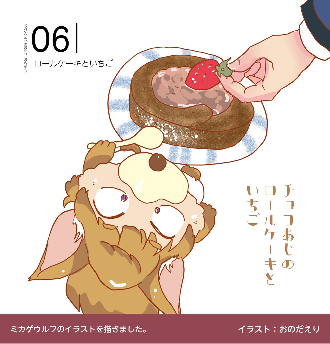 6 91 #ときメモGS4 ミカゲウルフのイラストを描きました。 本日のおやつは、ロールケーキといちごです。 22/02/06 19:41