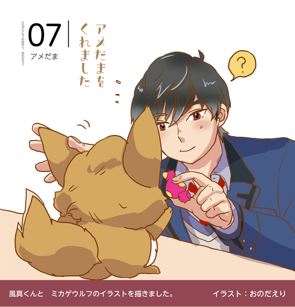11 139 #ときメモGS4 風真くんと、ミカゲウルフのイラストを描きました。 アメだまをもらって寝ました。 22/02/07 20:27