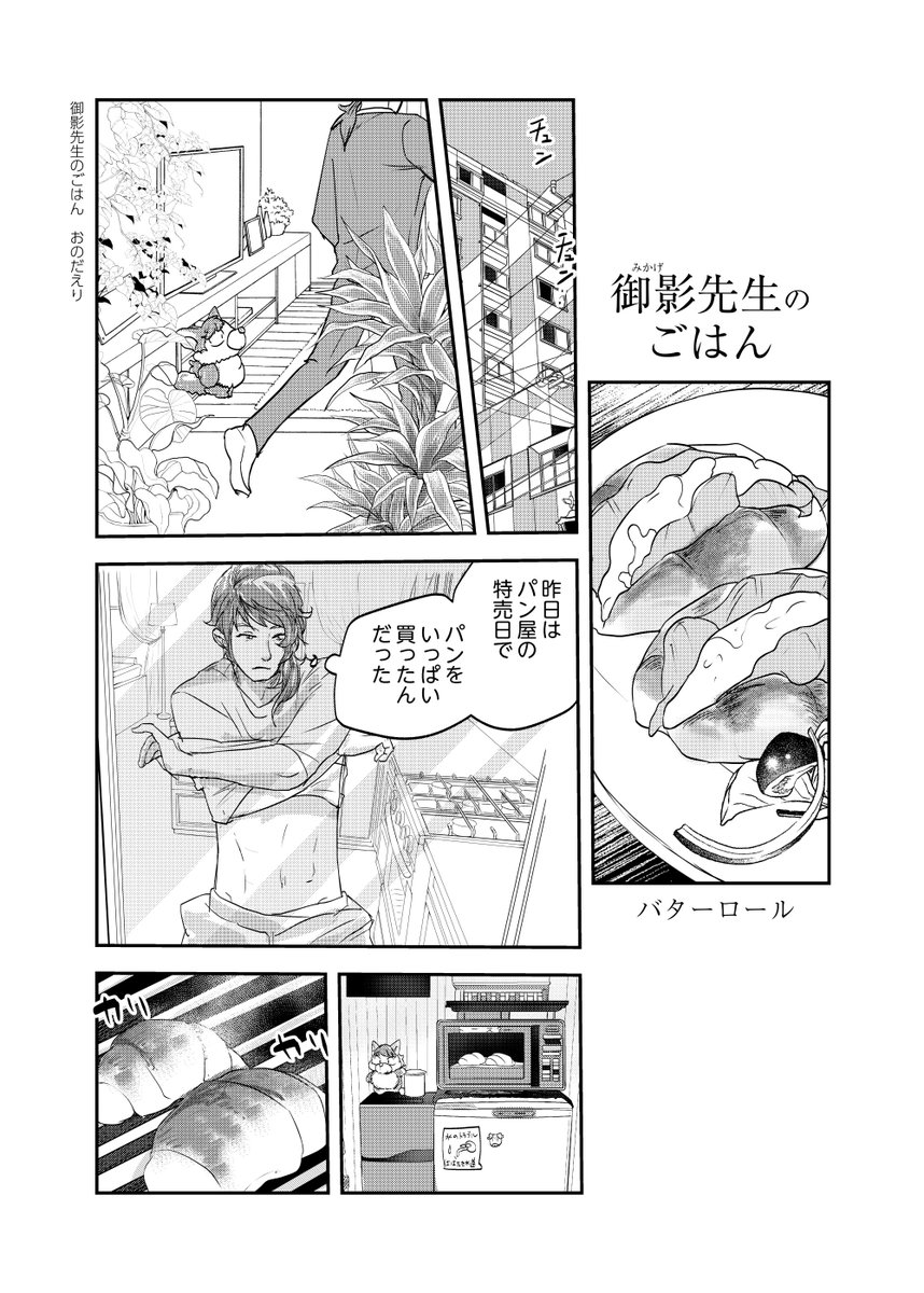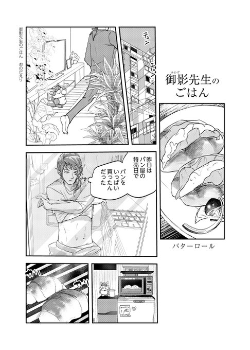 43 447 #ときメモGS4 御影先生のマンガを描きました。 今回は、 御影先生がバターロールを食べます。 具は、レタスとベーコンと炒りたまごです。 22/04/25 18:41