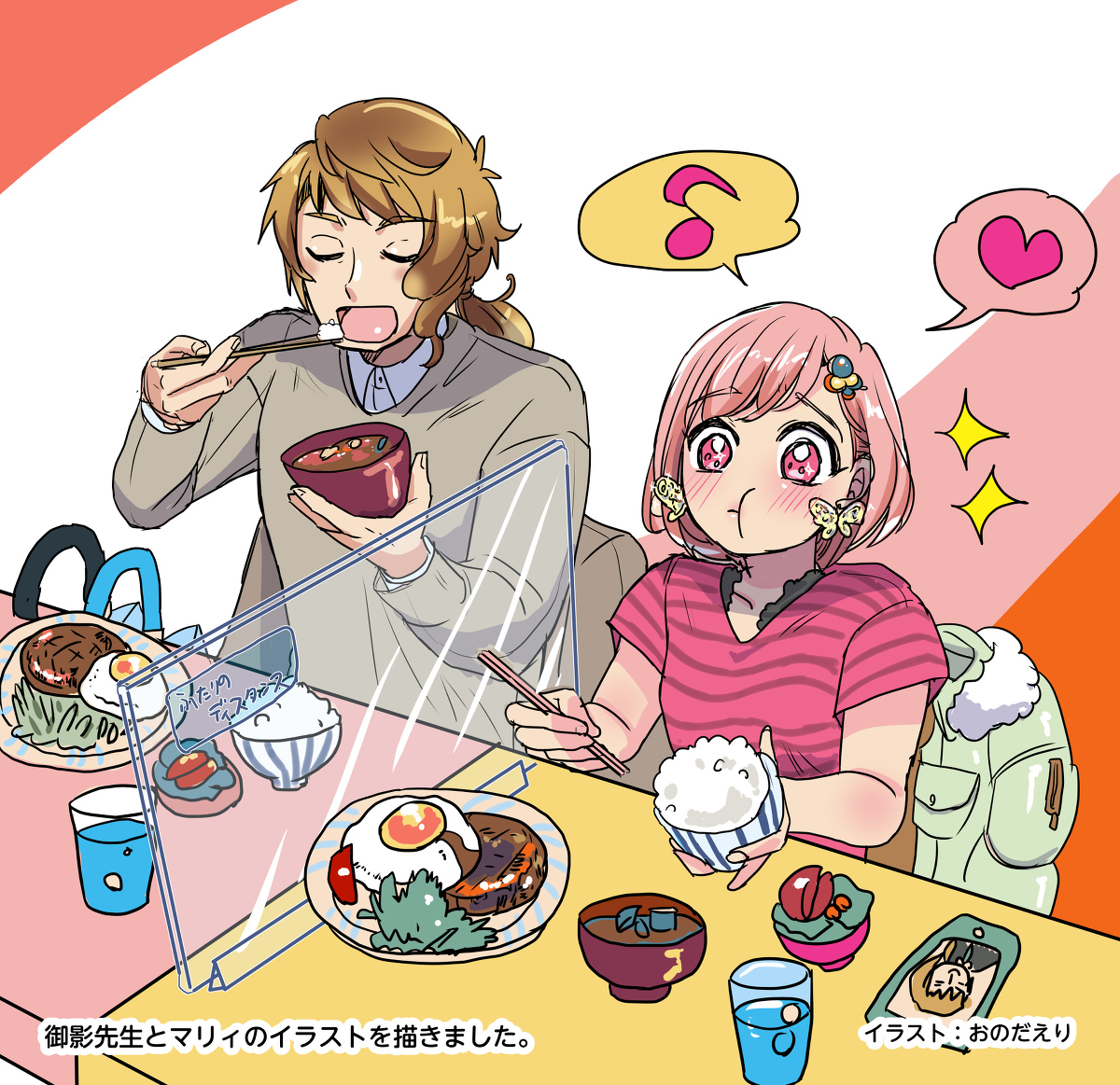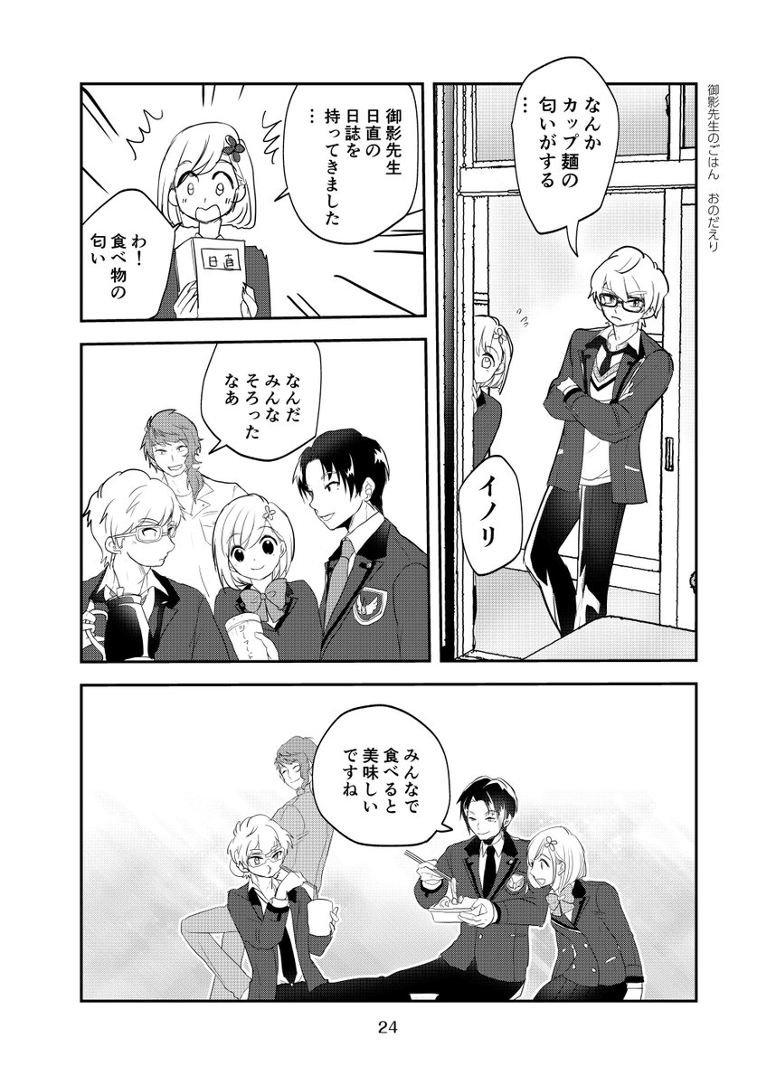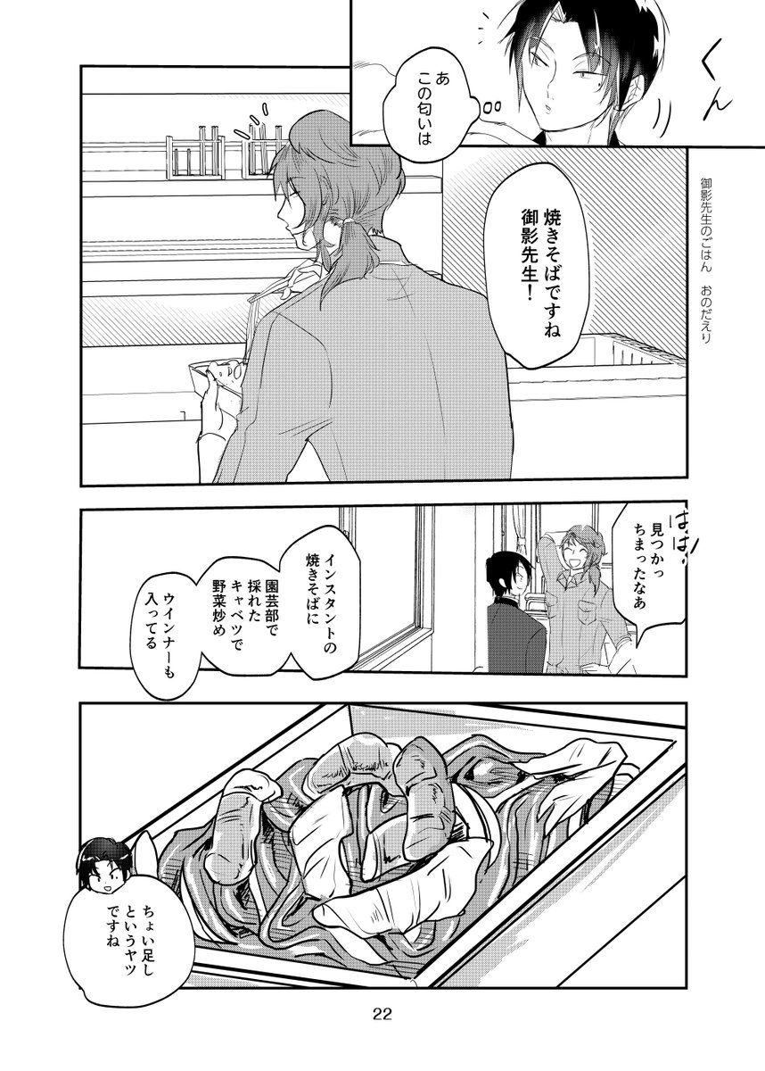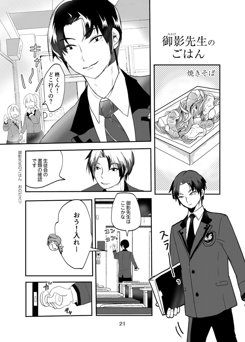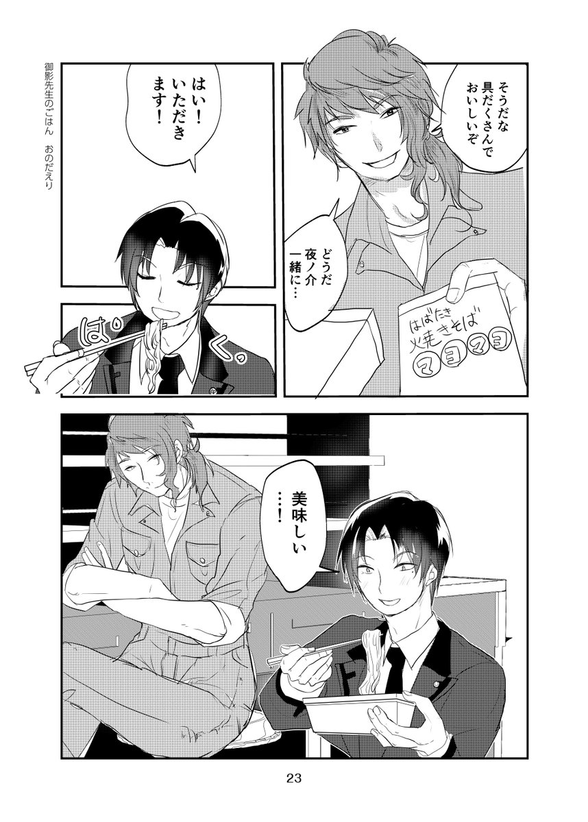 27 165 #ときメモGS4 柊くんと、御影先生のマンガを描きました。 今回は、 柊くんが焼きそばを食べます。 22/09/25 11:37