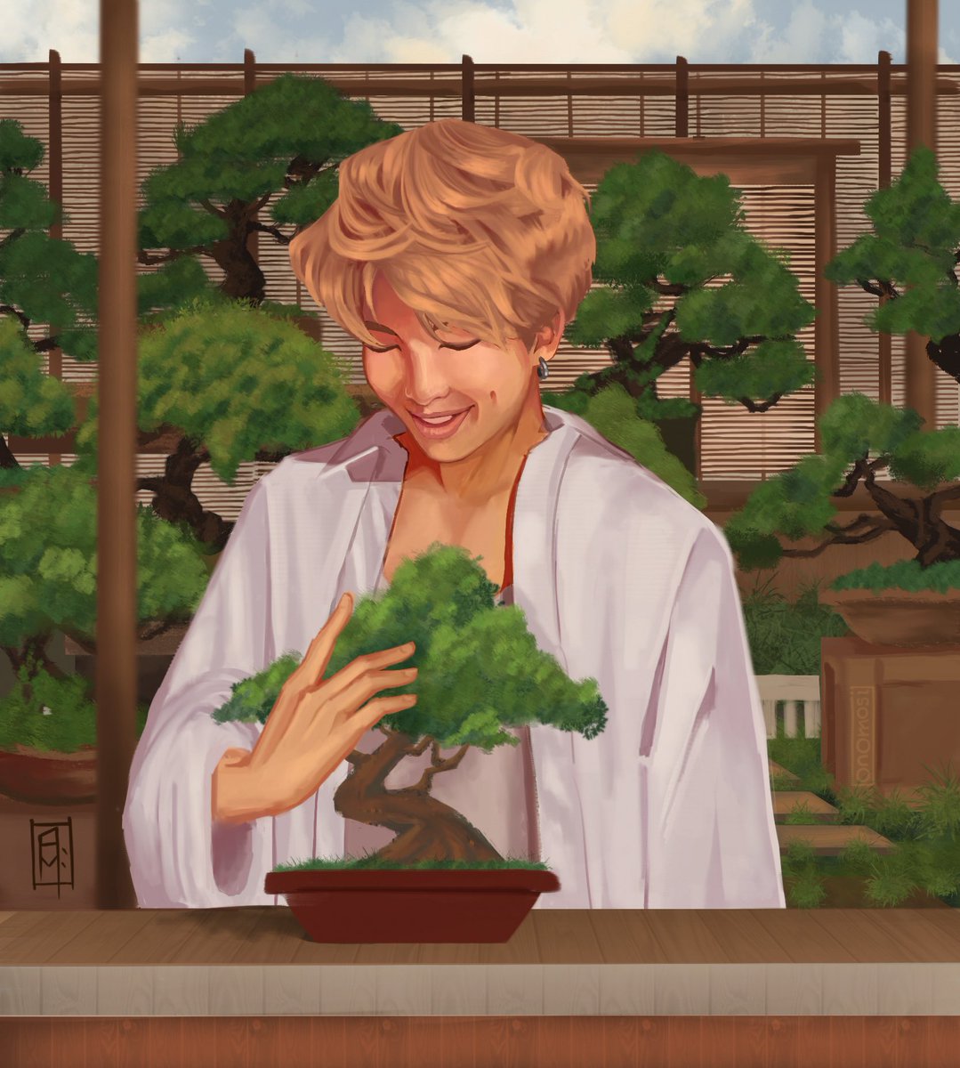 🌱just a birthday boy namjooning in his bonsai garden🌱 #HappyBirthdayNamjoon #AtLeastThisPlanetHasNamjoon #btsfanart #NAMJOON