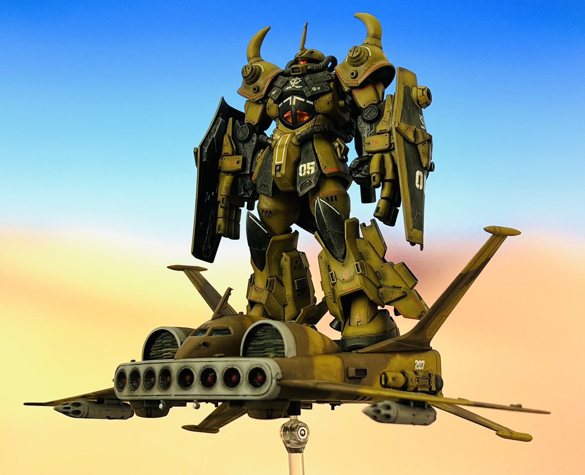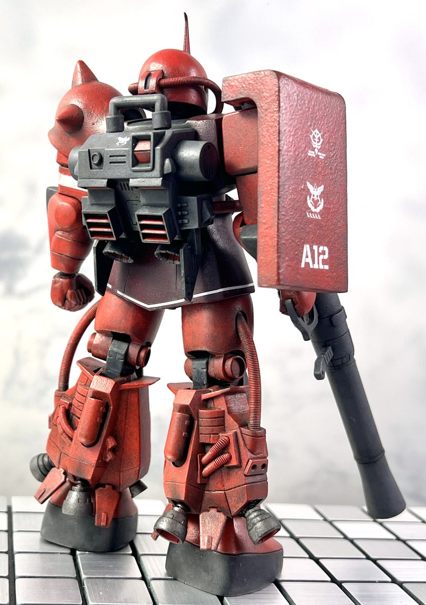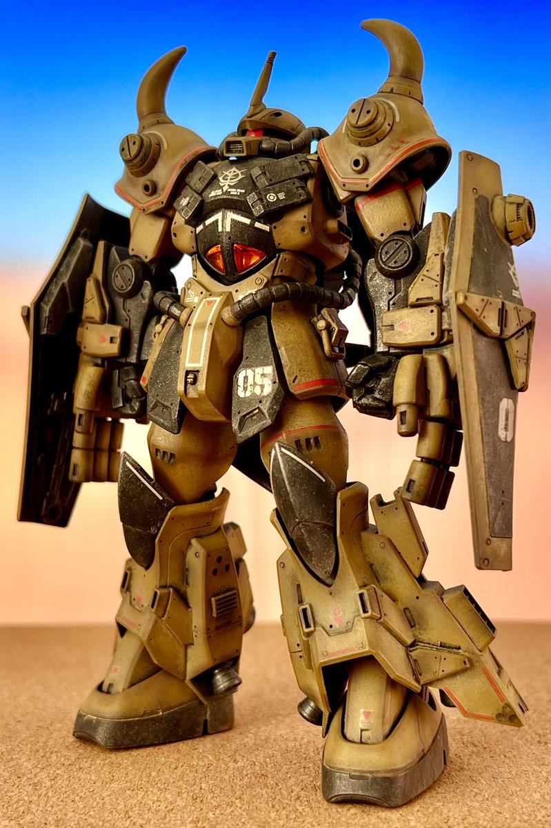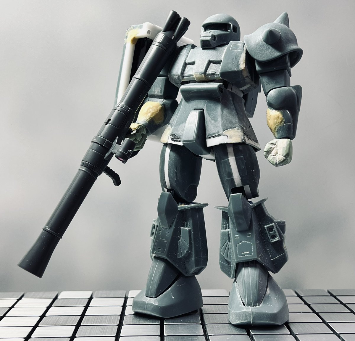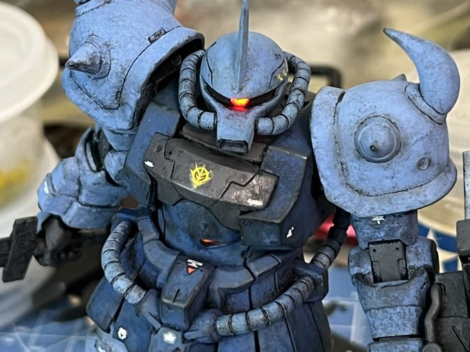 #ガンプラ #HGUC #ガンプラ好きと繋がりたい 自称ノリス専用グフカス進捗 アクリルガッシュ塗りに初挑戦🎶 隠ぺい力と発色は良いがちゃんと定着しないのね💦トップコートでどこまで定着できるか…😅
