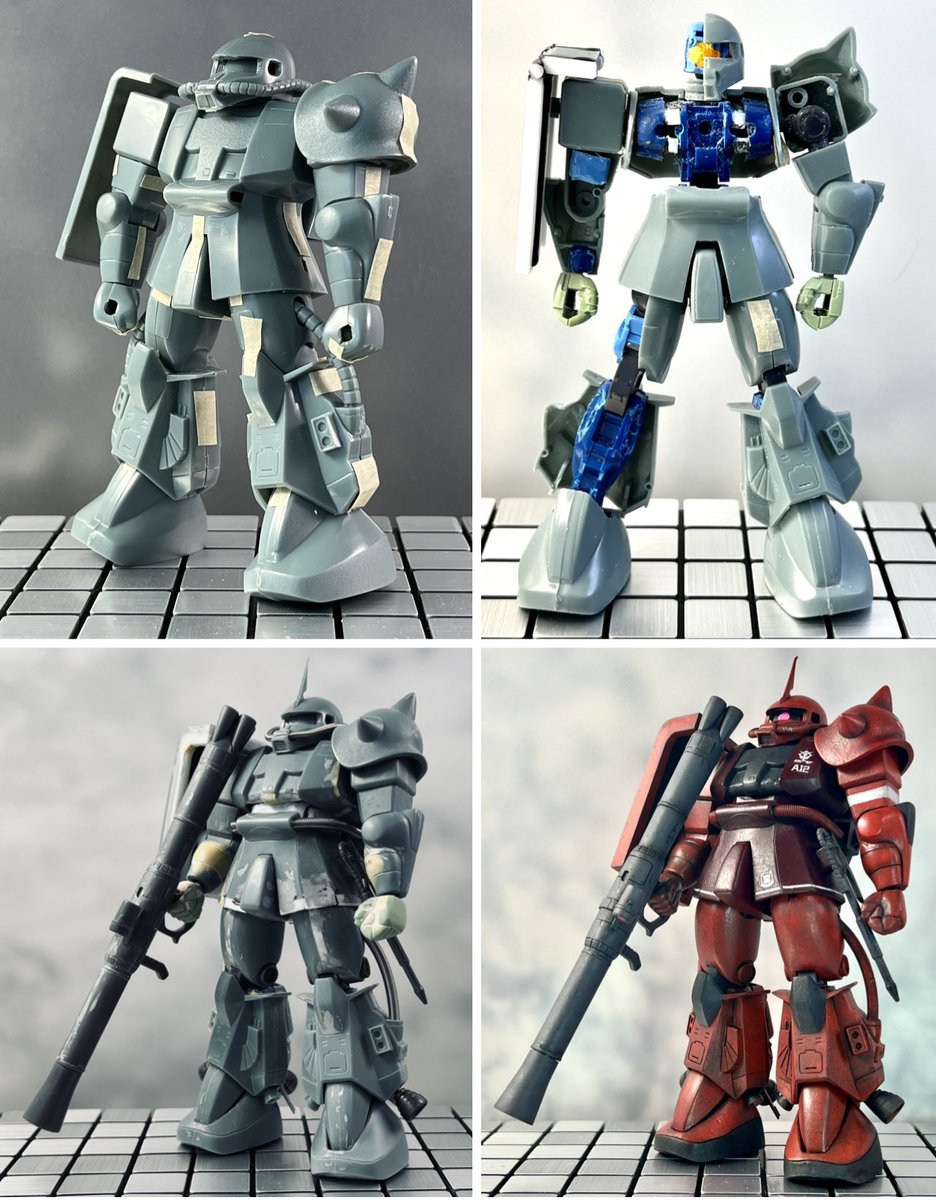 旧キット1/144Rザク30MMインナー工作のbefore〜afterシークエンスを4枚でまとめました😅 プロポーションは若干30MMに引っ張られ過ぎてしまいベストとは行きませんでしたね💦 #ガンプラの画像を貼るとRTされると聞いて #ガンプラは自由だ #ガンプラはどんな自由な発想で作ってもいいんだ #旧キット