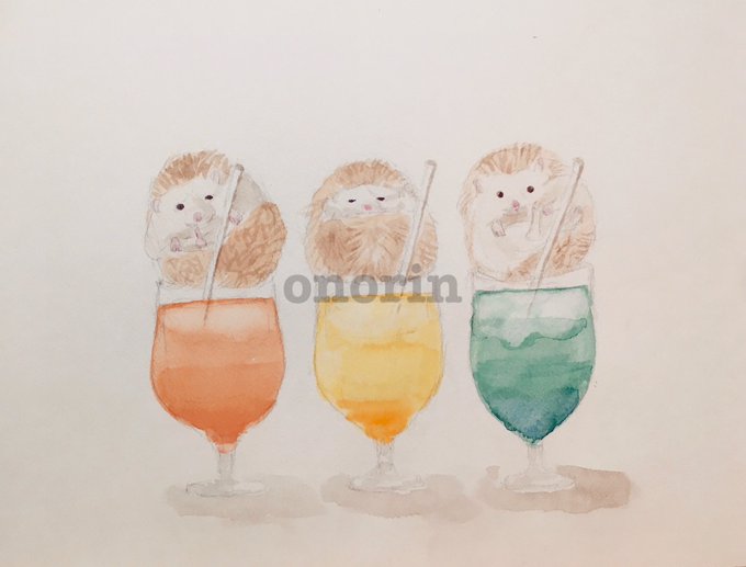 水彩画 ハリネズミドリンク #水彩画 #イラスト好きな人と繋がりたい #followme #フォロー #日本 #drawing #love #NFT #ハリネズミ