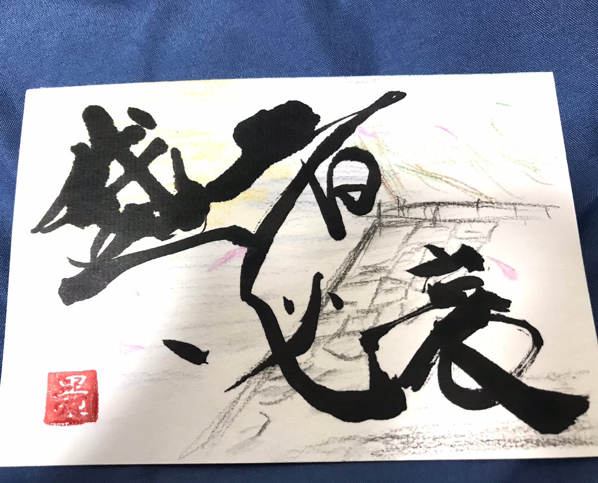 6 19 お絵描き60分一本勝負 #ポエドロ 瀧廉太郎「荒城の月」からイメージ 書道アート「盛者必衰」 墨・水彩色鉛筆 20/11/07 22:27