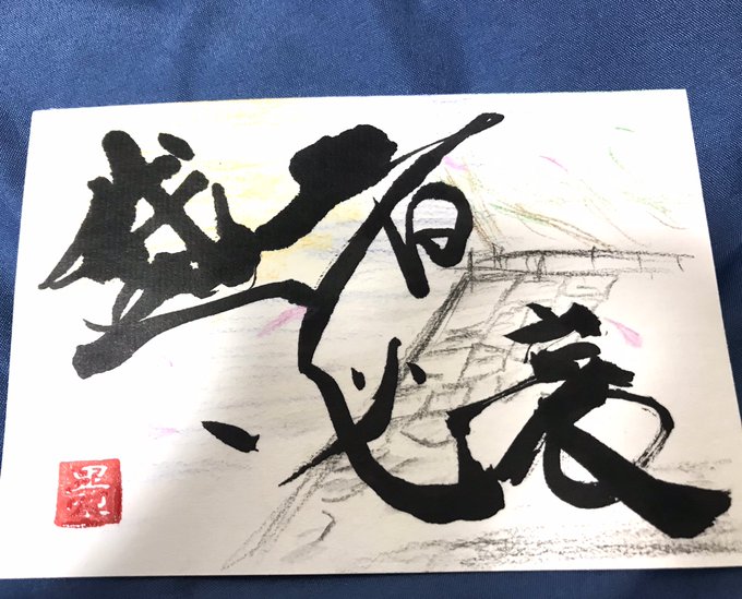 お絵描き60分一本勝負 #ポエドロ 瀧廉太郎「荒城の月」からイメージ 書道アート「盛者必衰」 墨・水彩色鉛筆