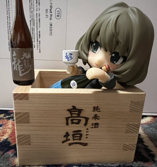 4 7 年末の買い出しに行ったらガチャガチャにミニチュア一升瓶があったので。 楓さんに持たせたらピッタリだった #キューポッシュ 抱えてるのは出羽桜 21/12/31 13:45