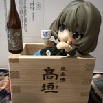 年末の買い出しに行ったらガチャガチャにミニチュア一升瓶があったので。 楓さんに持たせたらピッタリだった #キューポッシュ 抱えてるのは出羽桜