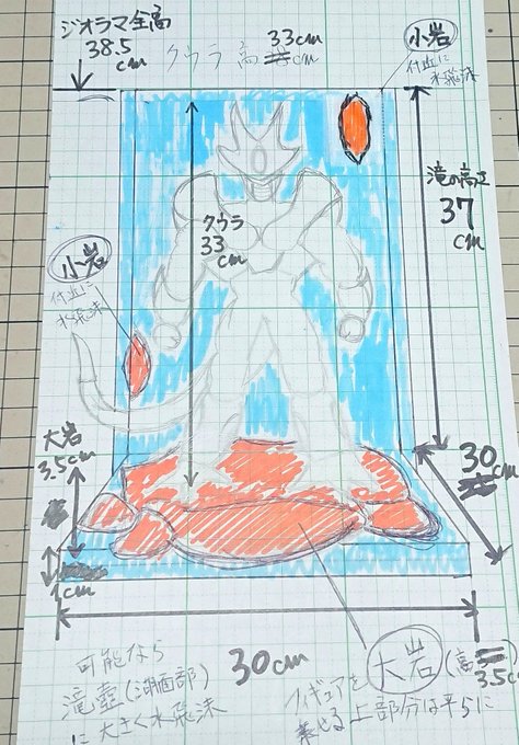 #このタグを見た人はラフ造型とその完成品を見せる グランドジオウのガワ製作で、最初にして最大の難関は頭の上のジオウや身体のレリーフだった。 作業自体が難しかったのではなく、 「レリーフにソフビが使えるのでは!?」って思い付けた事が最大の閃きで、ガワ製作を始める取っ掛かりになった。