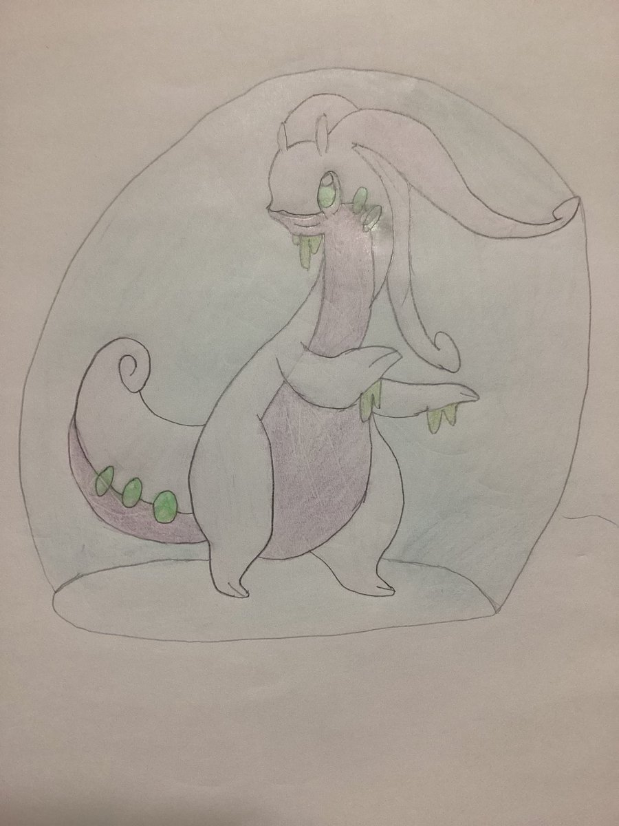 SVのパートナーの1人、ヌメルゴン。 初めてバリア的なエフェクト描いてみたの。 #ポケモン #ポケモンイラスト