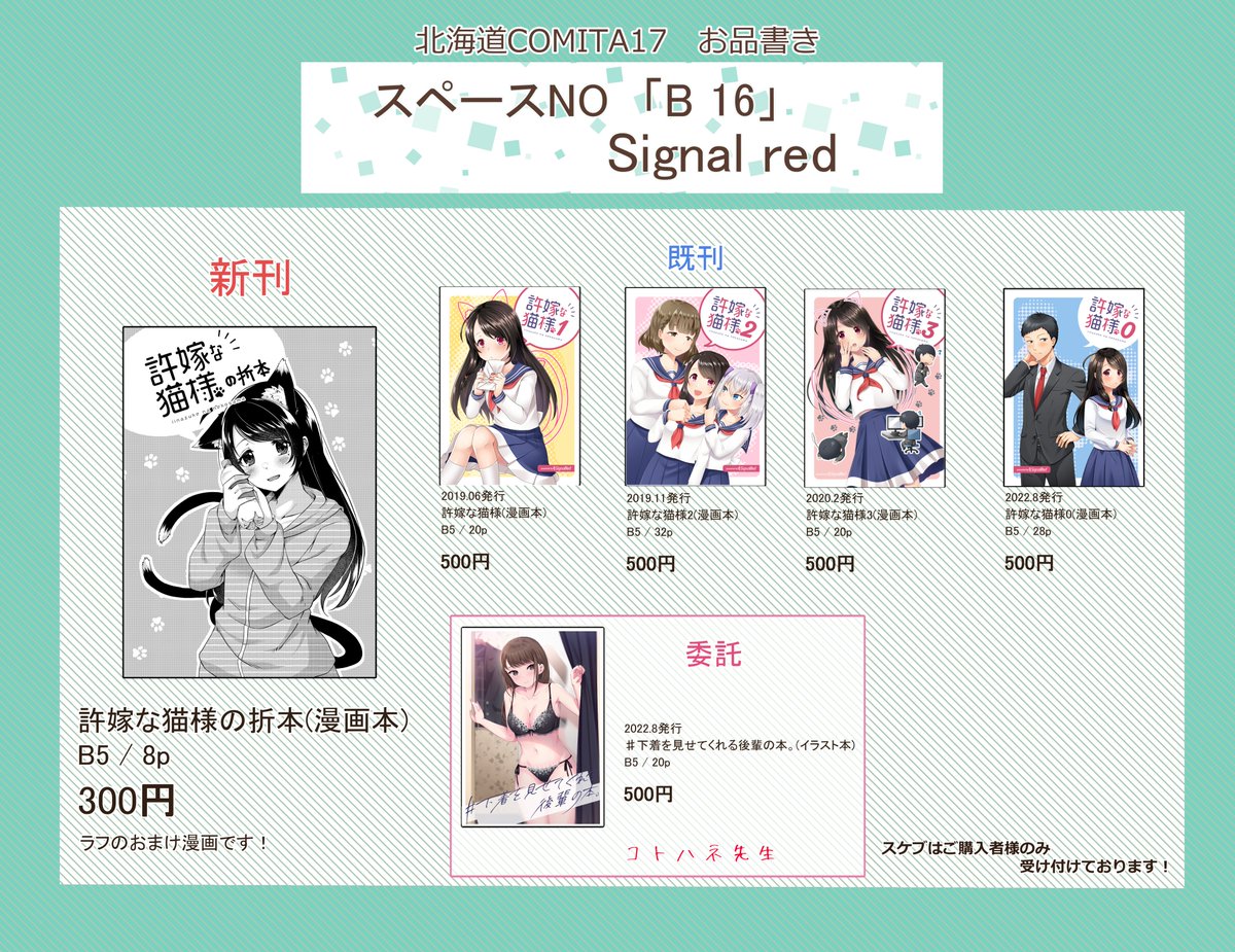 🍧C102お品書🍧 8/13(日)【西1 ひ-44b】 サークル「Signal red」にて新刊を頒布予定です また、当日は「なのはなこひなさん」とのコラボうちわをご購入者様に先着でプレゼント致します。 ツリーに新刊本文サンプルも掲載いたします~ webカタログ→webcatalog.circle.ms/Perma/Circle/1… #C102 #C102WebCatalog