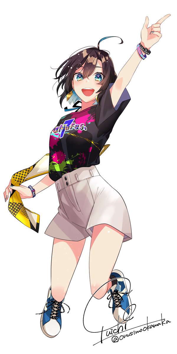 【依頼絵お披露目✨】 七篠さよ様@nanasayo09 の1周年記念『NaNaFes』のキービジュアル用イラストを担当させて頂きました! ポージングから衣装まで全て任せて頂き、フェスを楽しむ元気いっぱいのさよちゃんを表現しました!🥳 今年の夏は皆でNaNaFesを楽しもう!🎉(ロゴはご本人様が作成👏) twitter.com/nanasayo09/sta…
