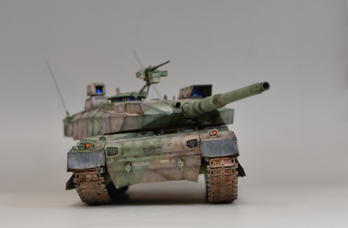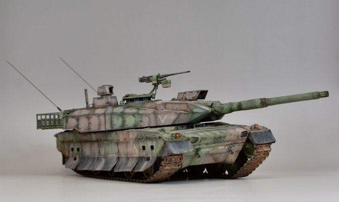 60 497 10式戦車がスラローム射撃をしている感じが作りたかったので全力作りましたよ!(1/35) 視線低く鑑賞すると最高です。 #Tamiya #筆塗り 21/06/01 02:24