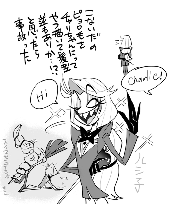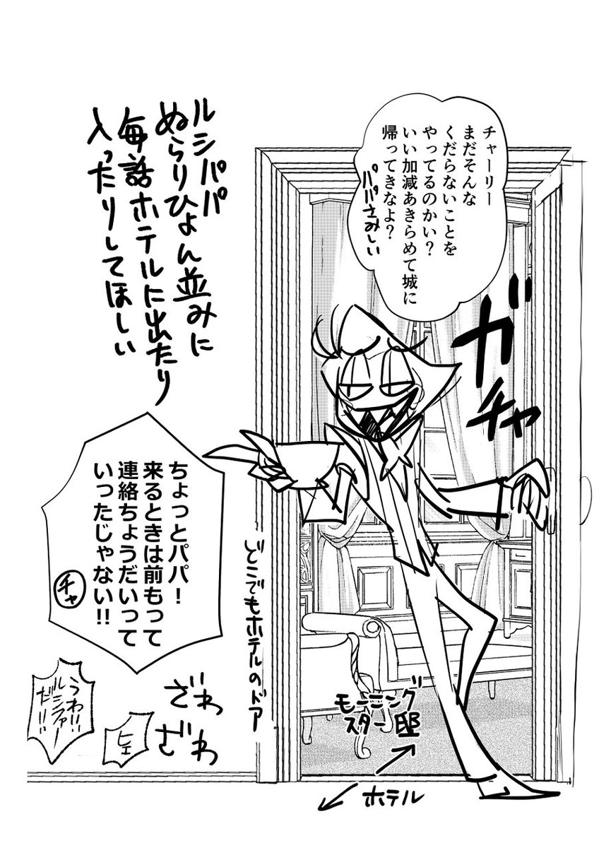 I also like the outfit in the photo hanging on the hotel wall☺️ (細かいところ間違ってるかもしれない) #HazbinHotelFanart #HazbinHotelLucifer