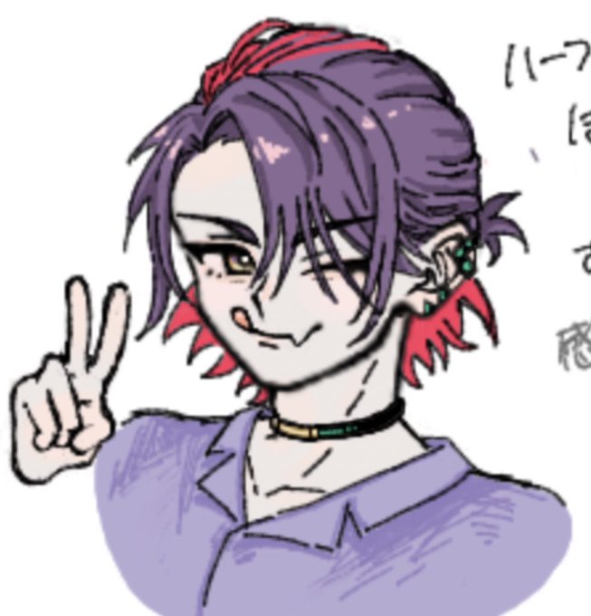 #わたらいらすと インナーカラーにはハーフアップが似合うってじっちゃが言ってた‼️