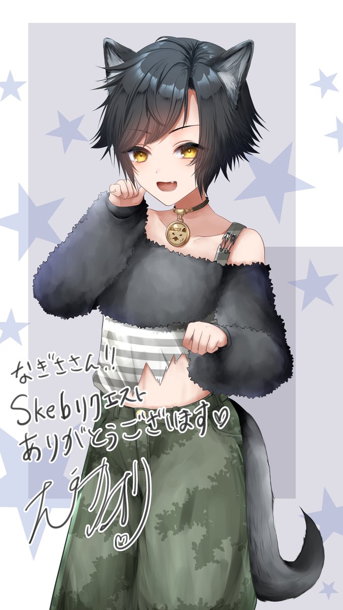 「オリジナルキャラの作成をお願いしたく思います。 黒髪のショートヘアで狼耳と尻尾のある少年(服装は私服)をお願いします。」 skeb.jp/@oodo_kaori/wo… #Skeb #Commission なぎささん【@ NAGISA0709Y】にSkebご依頼いただきました!楽しく描かせていただきましたよ! ありがとうございます!