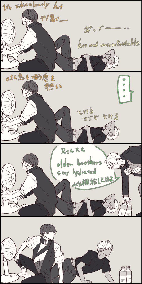 3「今、天使いたよね?」 Wasn't there an angel just now? 2「いた」 There he is 今日も暑いぞ! こまめに水分補給するんだぞ!☝️😉 #obeymefanart