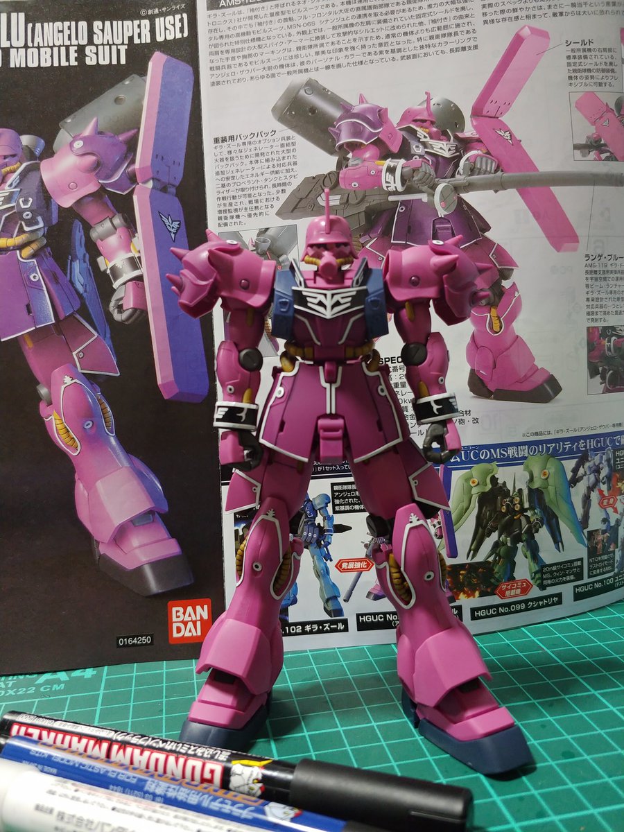 やっと本体を完成させました。 後はシールドとバックパックとランゲ・ブルーノ砲・改! #ギラズール #アンジェロザウパー #クレームは受け付けません #殆んどパチ組み