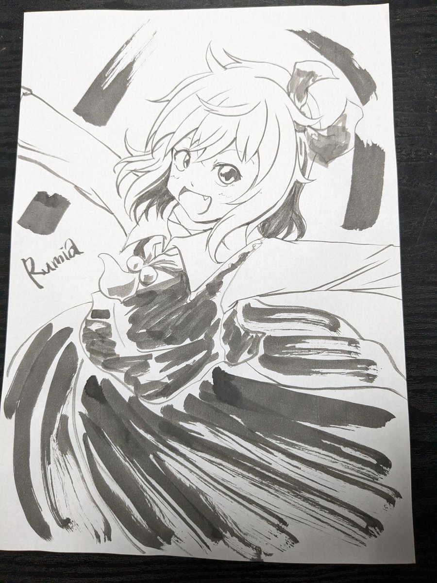 0 1 #深夜の真剣お絵描き60分一本勝負 #ルーミア 明日からpcの再建するから最後のアナログ。パーツ再注文レベルの大ポカしなければ。 23/04/20 23:08
