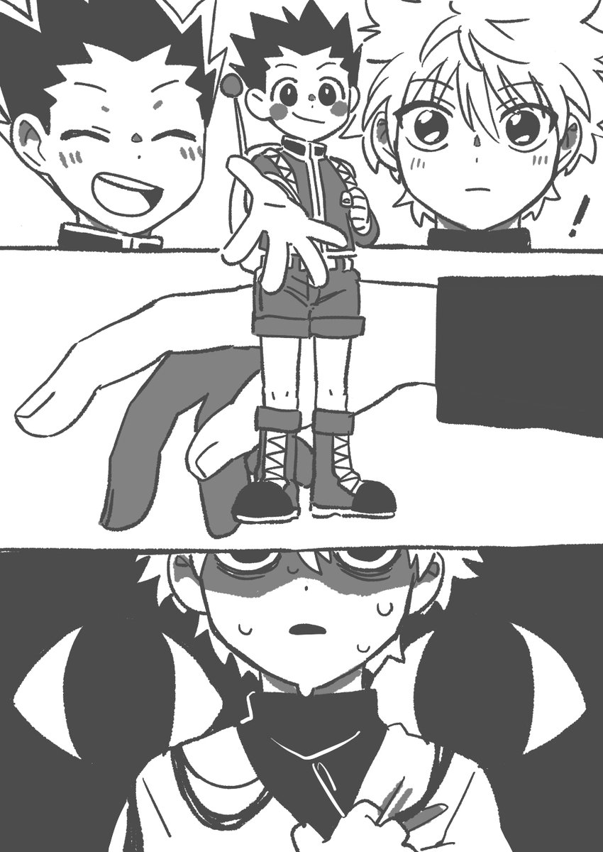 オリキャラとキルゴンコンビのリクエストをもらったので描かせていただきました~ ゴンは手首じゃなくて手を繋がせるべきだったかな