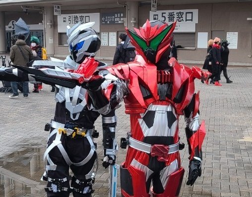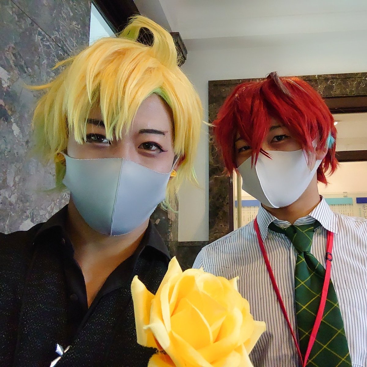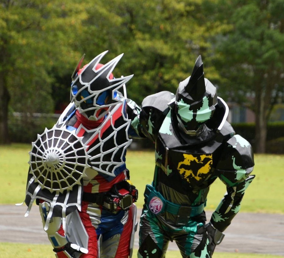 #コスプレ介護お兄さんあるある 「動いてるとマフラーずれちゃうなぁ〜」「いざ歩くと足のやつ、ずれ落ちちゃうなぁ〜」 コスプレ介護お兄さん( @_ptrd_1941 ) 「「安全ピンもってるから止めてあげるよ」」
