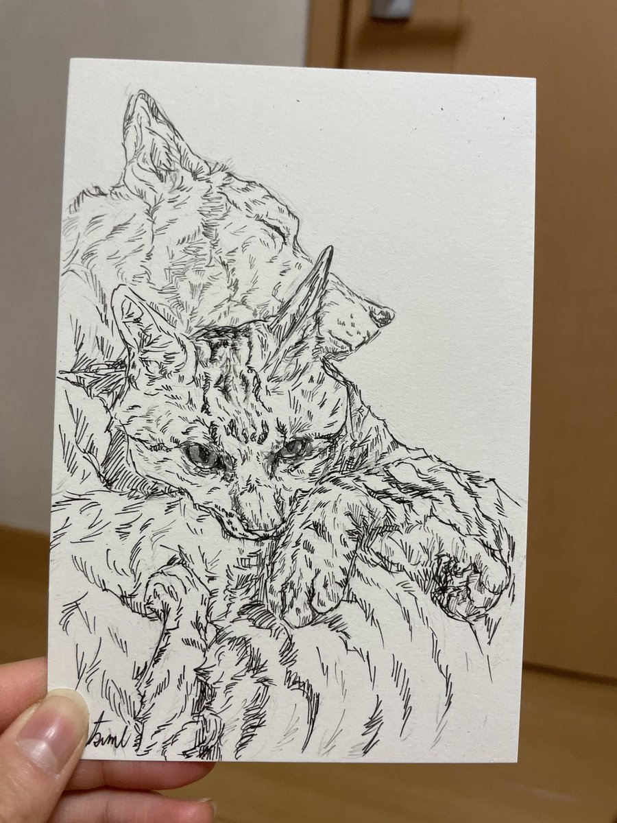 勝手でもうしわけないのですが… @b09a2032c さんの猫と犬が可愛すぎて描かせていただきました… 勝手に使って空いません💦 いつも、凄く癒されています! いつか私も飼いたいなぁ… #絵描きさんと繋がりたい