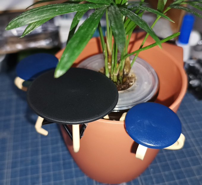 2 4 こう水耕栽培の鉢植えがあるじゃろ? で、縁にテーブルと丸椅子の脚を曲げてつけるじゃろ そうすると観賞植物を観賞してるみたいになるんじゃ お休みなさいまし #メガミデバイス #武装神姫 23/06/25 20:42