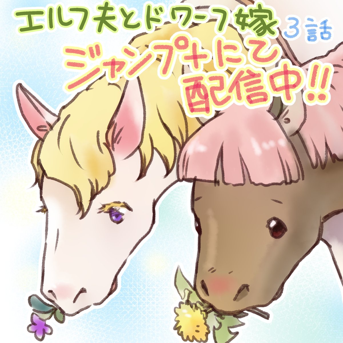 配信中~! 月曜24時までに閲覧すると、作者応援の魔法がかかります(^o^)お馬さんかわいいよ~ [第3話]エルフ夫とドワーフ嫁 - 小松良佳 | 少年ジャンプ+ shonenjumpplus.com/episode/485600… #ジャンププラス #漫画が読めるハッシュタグ