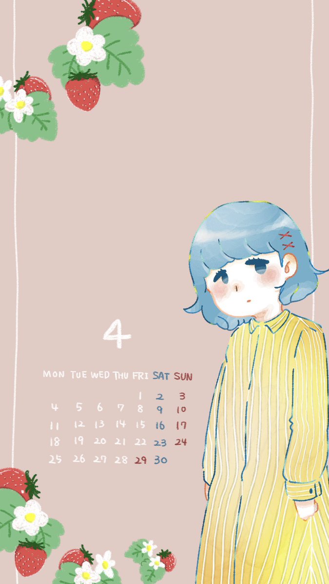 《4月 カレンダー壁紙》 春らしい色合いでぷっくりイチゴと女の子を描きました🙌 使用の際はフォロー&RT🔃 @oomeeeeeoo1101 のタグ付けを お願い致します💡 #カレンダー配布 #カレンダー壁紙 #イラスト #イラスト好きさんと繋がりたい #絵描きさんと繫がりたい