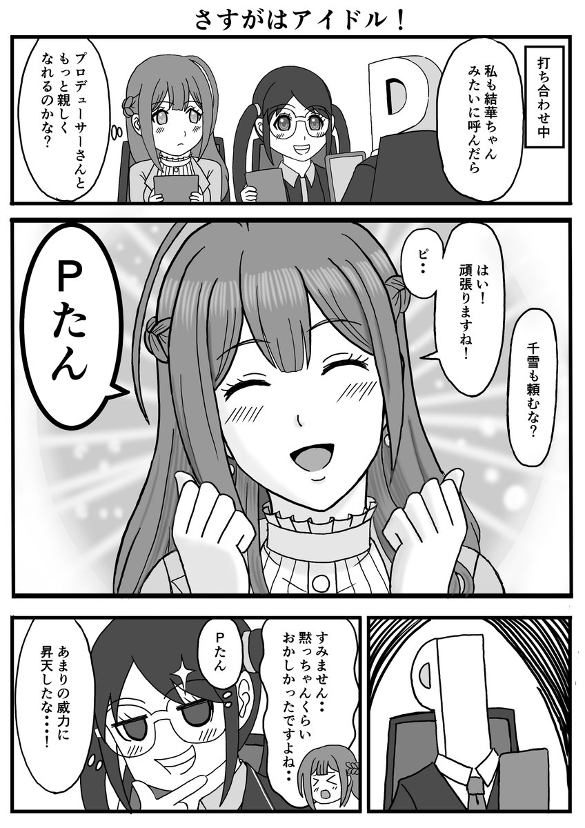 シャニマスの4コマ描いてみました。 中の人に届いたらいいなあ #シャニマス #千雪 #桑山千雪