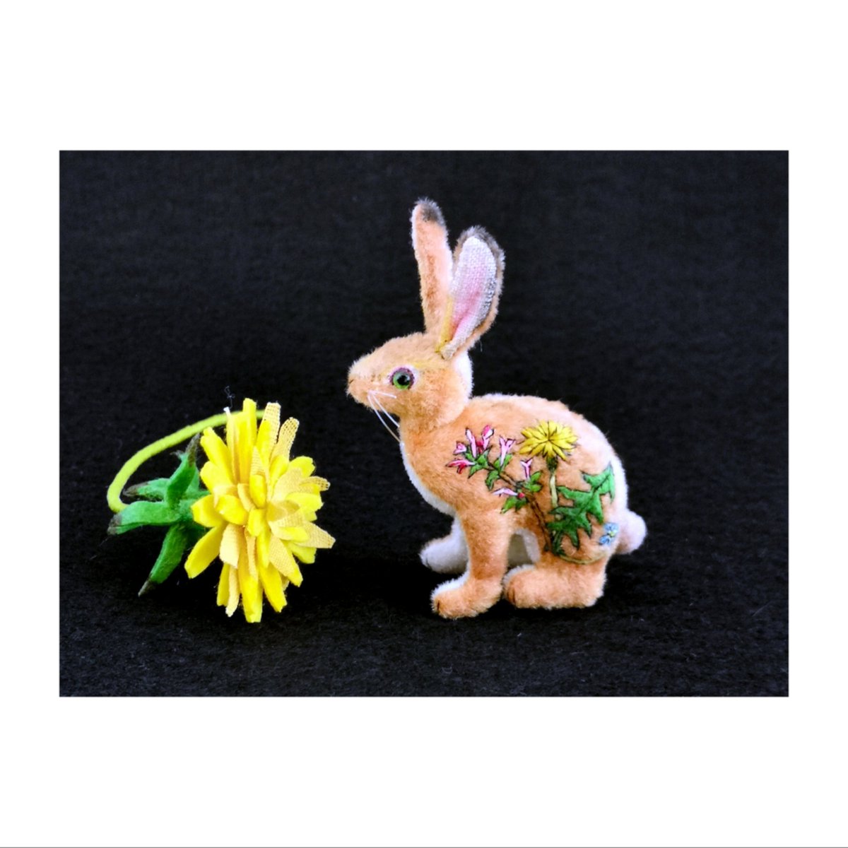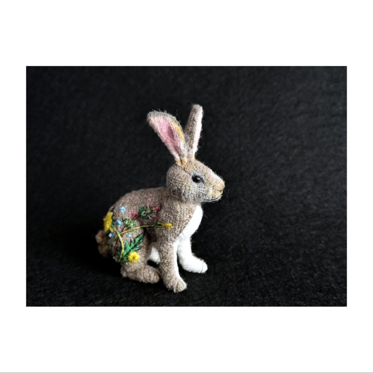 #あなたの花見せてください 小さなうさぎのぬいぐるみを作って、花の刺繍をしています。
