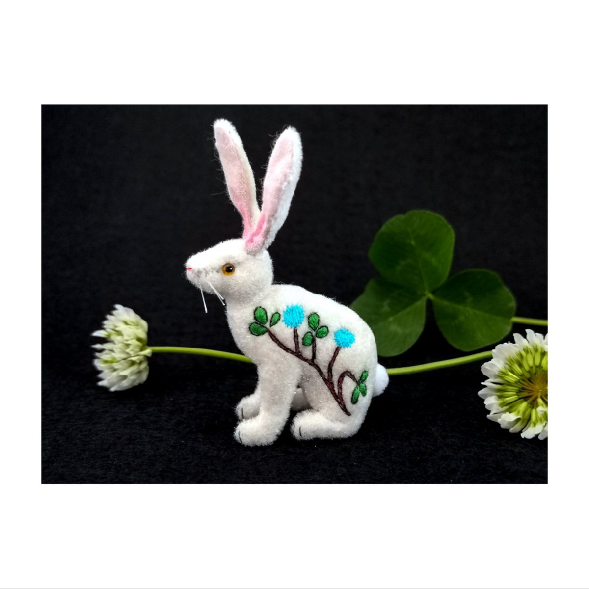 65 264 #あなたの花見せてください 小さなうさぎのぬいぐるみを作って、花の刺繍をしています。 19/02/08 09:37