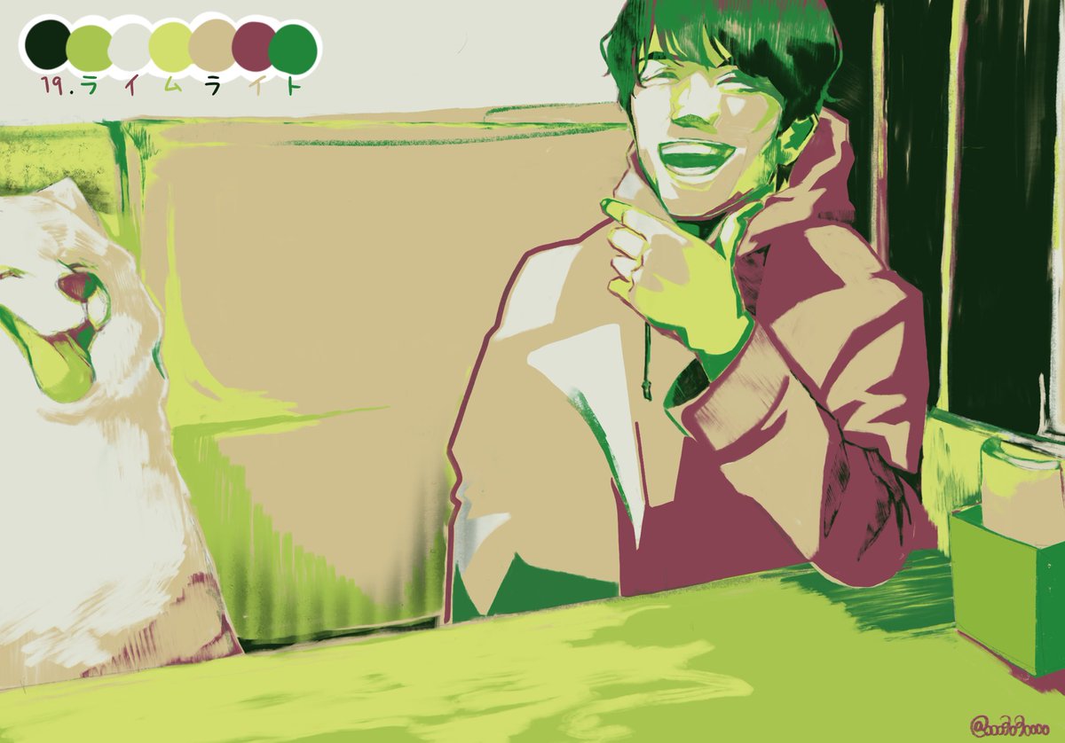 #リプをもらった番号の色を使って絵を描く 08.お祭り騒ぎ 14.ほろほろマカロン 19.ライムライト 21.シーサイド