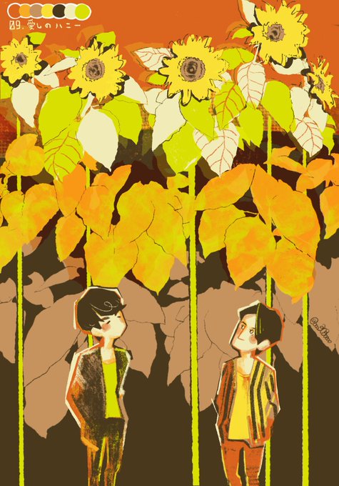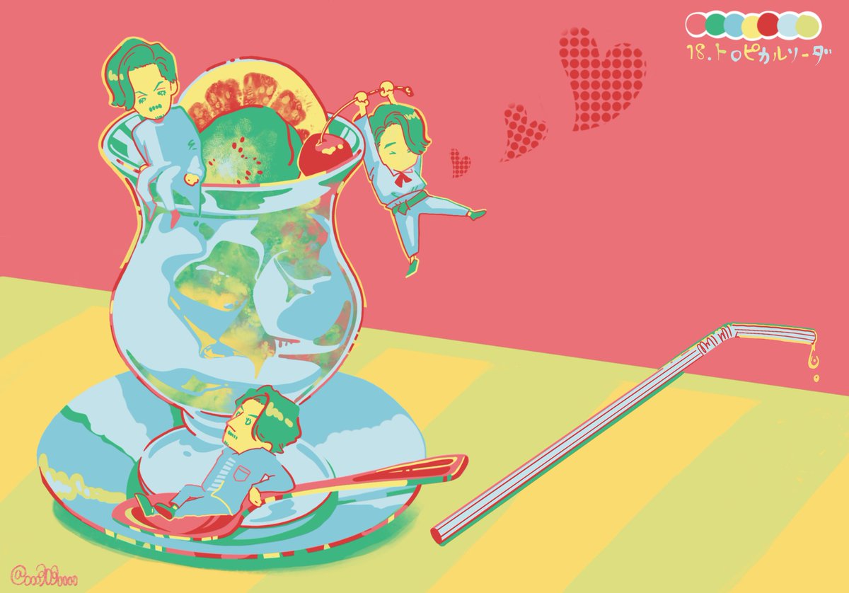 #リプをもらった番号の色を使って絵を描く 09.愛しのハニー(いのーか) 18.トロピカルソーダ 今回はちびキャラで!