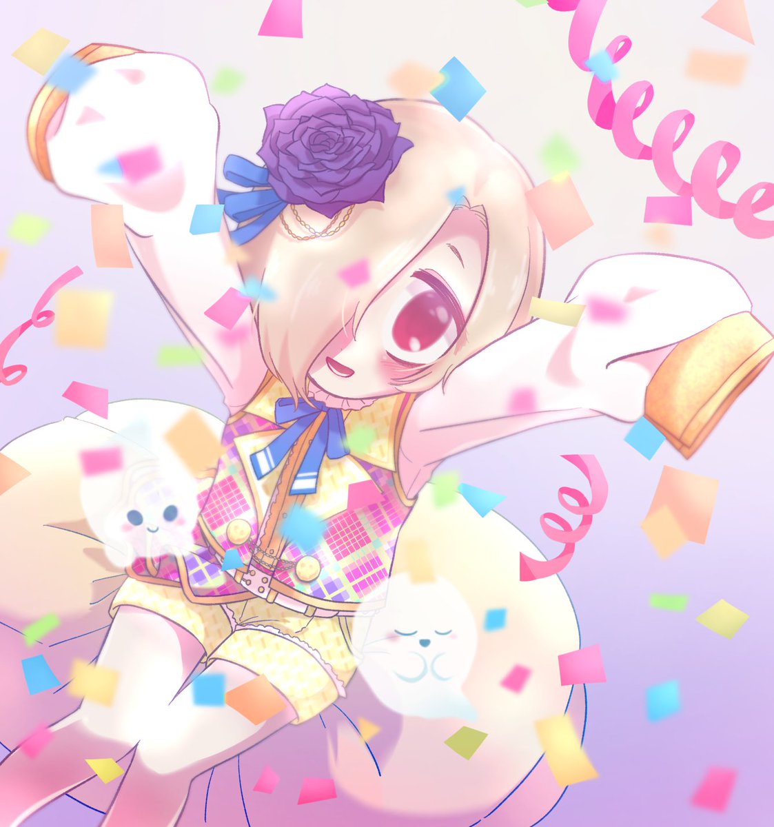 担当ふたりの誕生日絵、なんとなく似せたやつにしたかったので背景色とか塗り方を同じにしたんだ