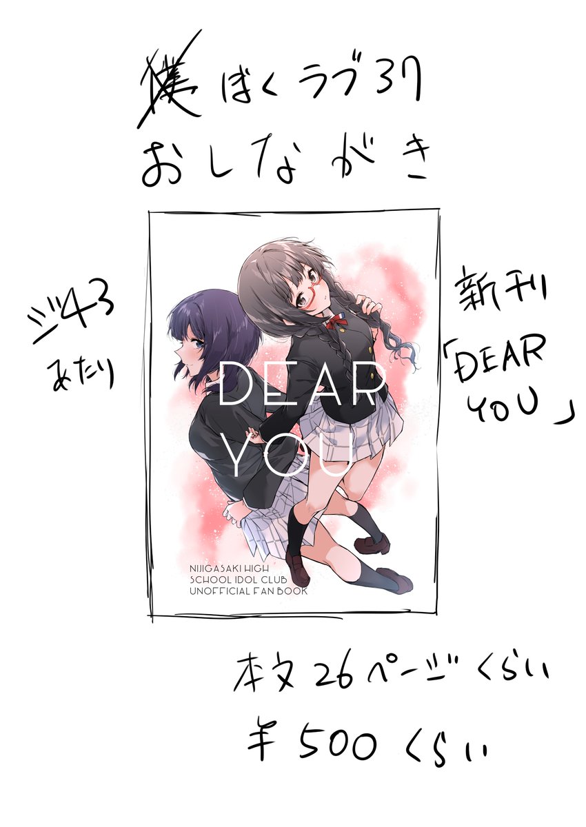 4/16の僕ラブ37のお品書きです。 新刊を置いています。 既刊は存在を忘れていたのでありません。 色紙くらい適当に描いて持っていくかもしれませんが気分次第です。 委託もしています melonbooks.co.jp/detail/detail.…