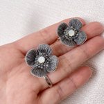 グレーなイヤリング欲しかったから作った〜☺️ 大きめでいい感じ🌈 #立体刺繍