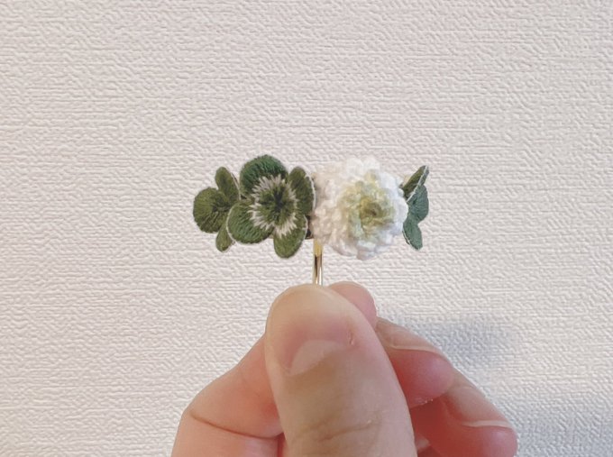 0 2 できたできた🍀 今年1つ目のアクセサリーできた✨ 白詰草大好きなんだ〜 白鳥の停車場さん(@akm8726 )に納品予定です🙋♀️ 今年は沢山納品できるといいな〜🌈 #立体刺繍 23/01/12 14:34