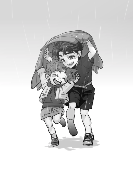 昨日散歩してたら突然雨に降られたんだけど、そこですれ違った兄弟がとても尊かった。 ※ショタ 承花
