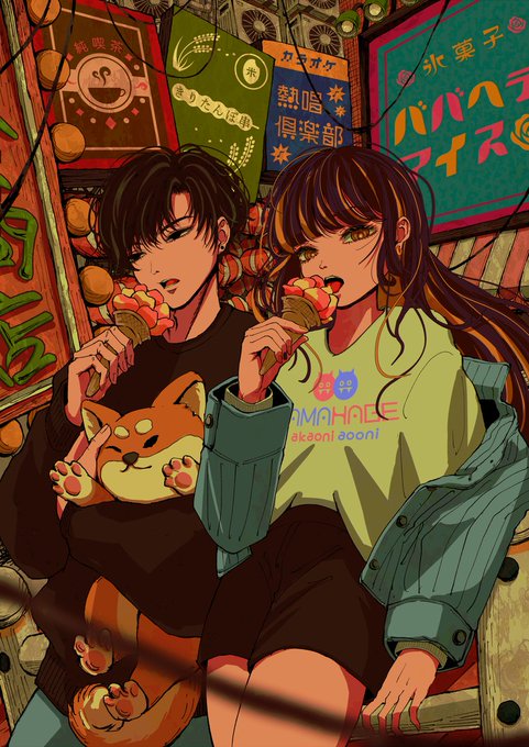 お散歩中の買い食い🍦 ※看板/服デザイン:kumikaさん( @kumika_kmk #イラスト #illustration