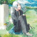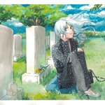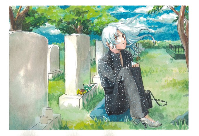 Watercolor and gouache of woman visiting grave. Coming back to painting…There’s something special about traditional mediums~ #OriginalCharacter #100ArtHOURS #イラスト #dibujotradicional #TraditionalArt #画画 #水彩 #balmain #animeart #cemetery #watercolor #gouache