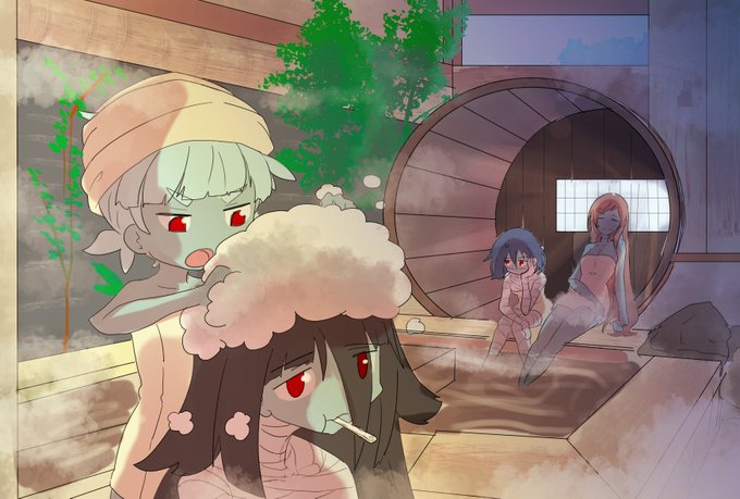 #ゾンサガ版深夜の真剣お絵かき60分一本勝負 お題「お月見」 「月のが明るかねー」 「今日は明かりが少ない気がしんす」 「みんなお月見しよるとかな」 「きっとそうでありんしょう」 「ゆうぎりさんの時代もこんな月やった?」 「さて…ただ、星は地に降りて来た様で驚きんした」 【某所:十五夜】