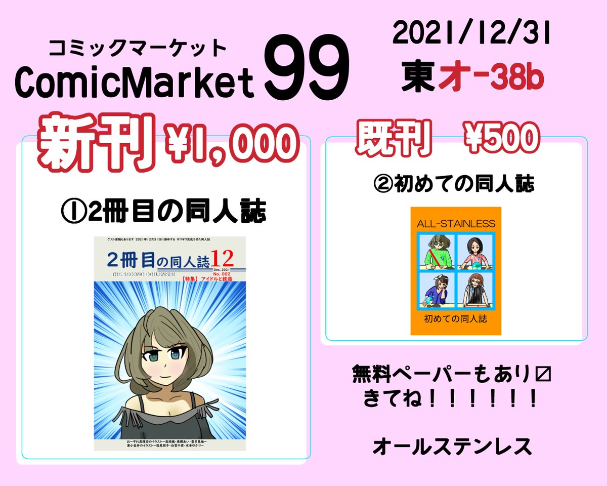 あなたのサークル「オールステンレス」は、コミックマーケット101で「土曜日東地区 "リ " 28a」に配置されました! ついに喜多見柚メイン本が出ます。(出す) 多分旅ログ本です。 webcatalog.circle.ms/Circle/1680299… #C101WebCatalog