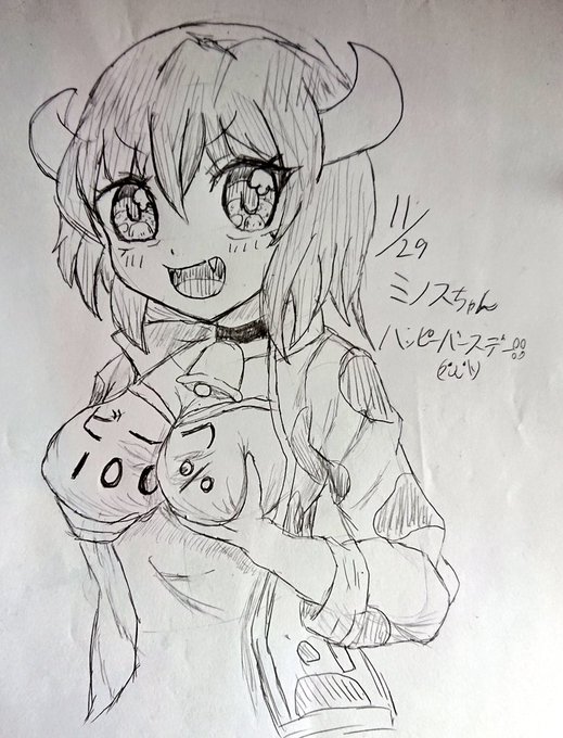 昨日寝落ちしちゃったから1日遅れだけどミノスちゃんお誕生日おめでとう‼️🐮🥛🧀🍖 乳を強調して描くのめっちゃたまんないッス(ノ)•ω•(ヾ) #邪神ちゃんドロップキック #ミノス生誕祭2022