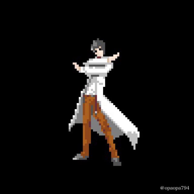 本日のドット STEINS;GATE シュタインズゲート 岡部倫太郎 Rintaro Okabe #pixelart #ドット絵 引き続き女神転生っぽいシュタゲ ゼロのアニメでこのポーズを早く観たい