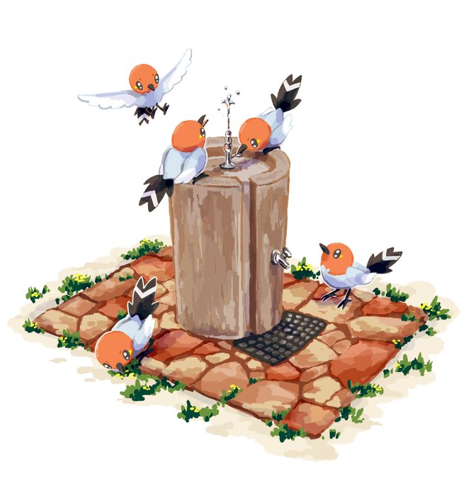 水飲み場のヤヤコマたち #ポケモンイラスト